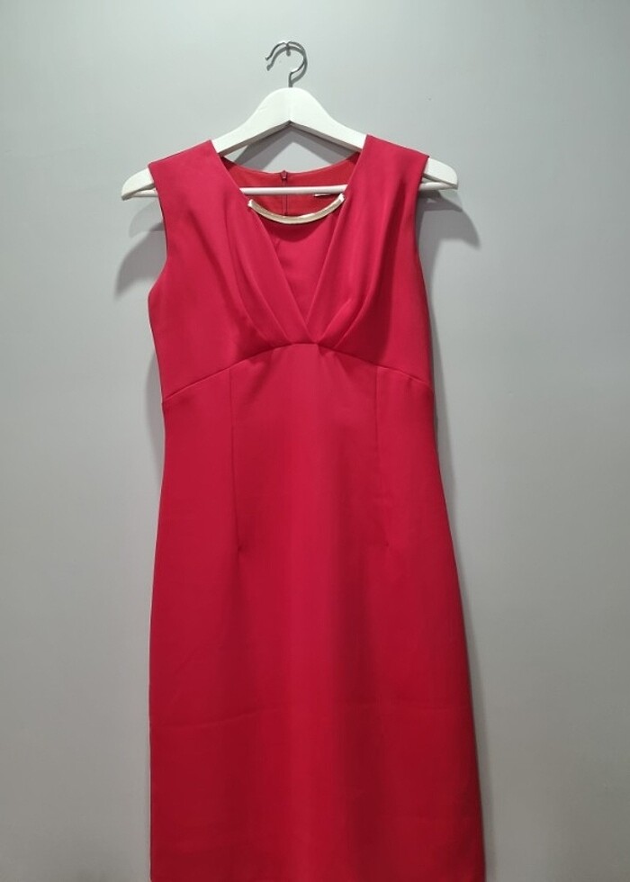 Kırmızı kendinde gold kolye detaylı mini elbise