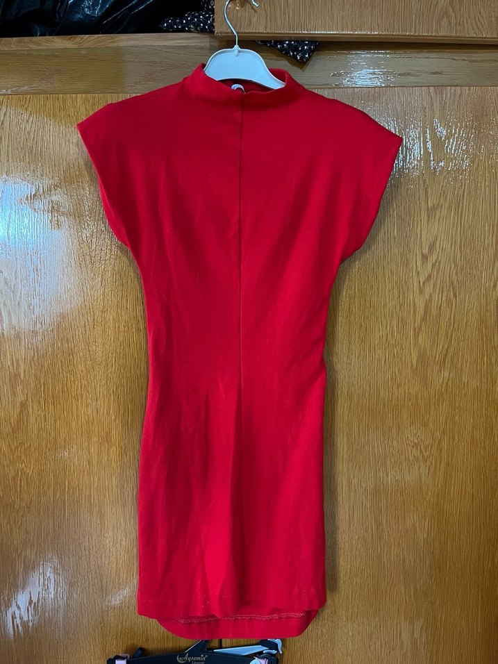 Kırmızı mini elbise yanları büzgülü