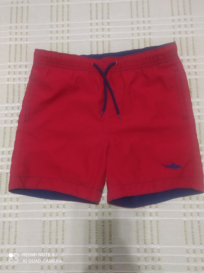 Kırmızı renkli, mini boy ve dar kesim erkek deniz şortu, belde bağcık detayıyla rahat bir kullanım sunar, plaj ve sokak stiline uygundur. 7-8 yaş