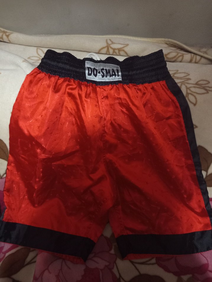 Koyu kırmızı renkte,bel ve paça kısmı siyah, belinde DO-SMAT markası bulunur. Tai-boks