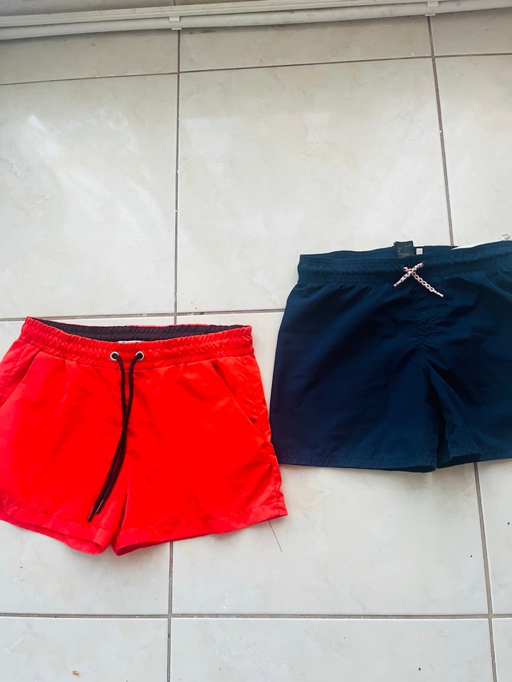 Erkek deniz şortu kırmızı olan nap marka xs beden lacivert olan H&M marka 13/14 yaş