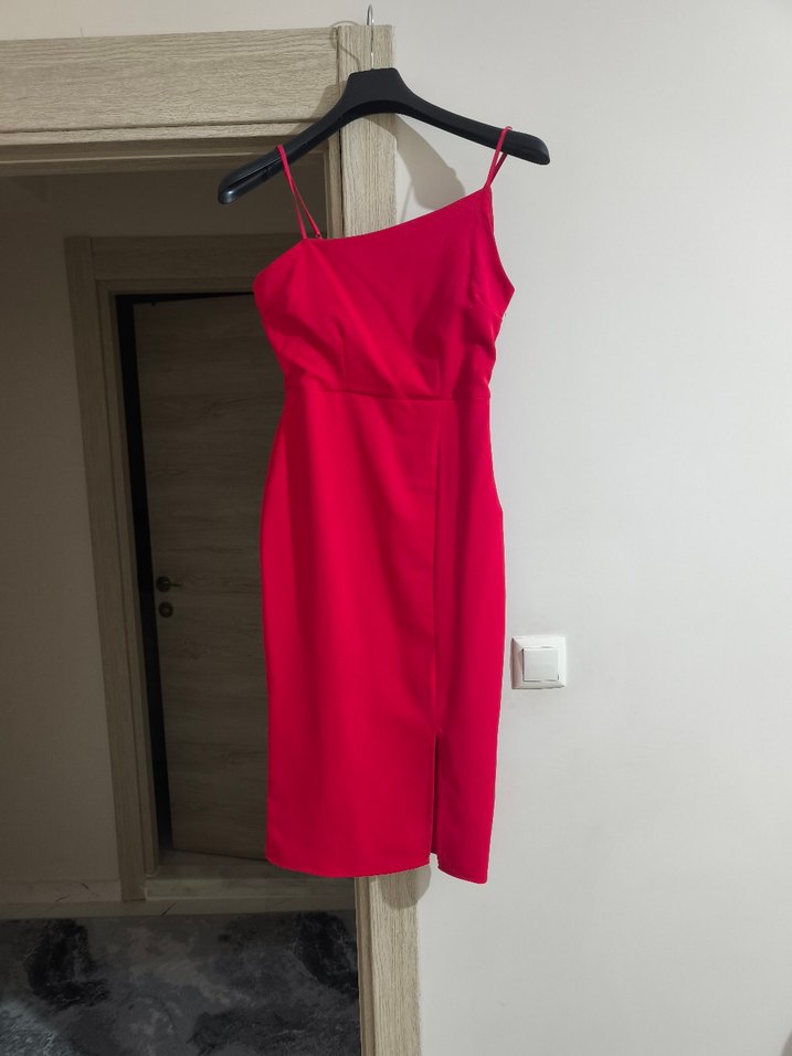 Kırmızı Mini İnce Askılı Elbise