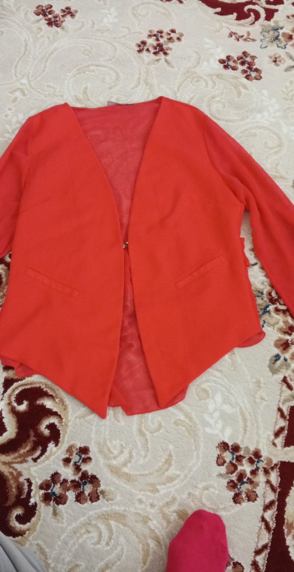Kırmızı mini blar, kesik yakalı ve uzun kolludur. Rahat kesim, fermuarlı ön ve sentetik kumaştan yapılmıştır. Günlük kullanıma uygundur.