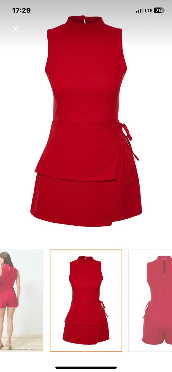 Kırmızı, sıfır kollu, kısa ve dar kesim kadın tulumu. Sentetik kumaştan, parti için uygun, cesur sokak stili. marka trendyolmilladir