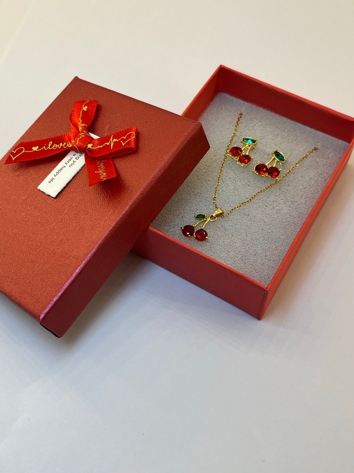 Kırmızı Mini Kirazlı Modern Klasik Kolye Seti