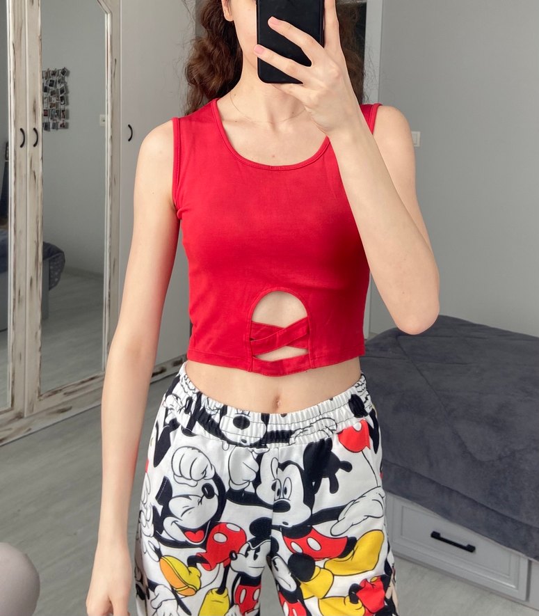 Kırmızı Mini Kolsuz Crop Top