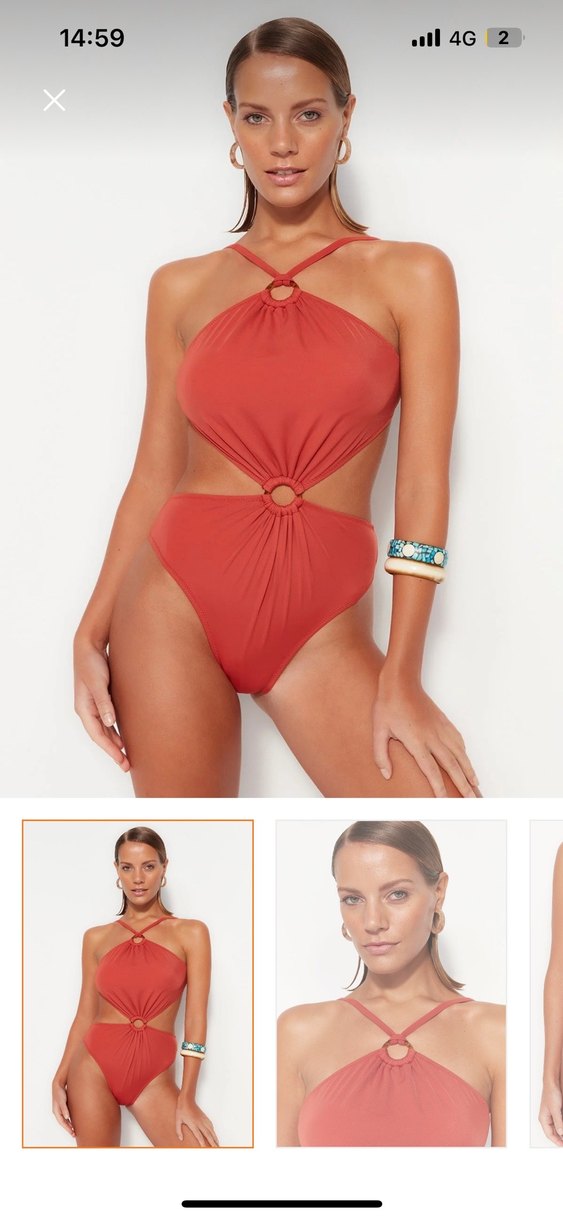 Kırmızı renkli, sırtı açık, halka detaylı ve modern tasarımlı, minimalist kadın mayo. Plajda şık ve rahat bir tercih. Beden olmadığı için giyilmedi sıfır ürün .