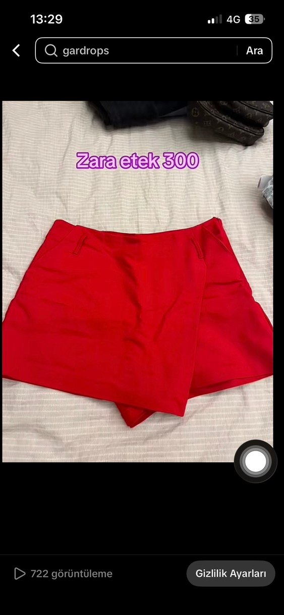 Kırmızı renk, düz desenli ve dar kesim mini şort etek. Sentetik yumuşak kumaştan, minimalist ve şık sokak tarzı için uygun. Zara ürünü. ❤️