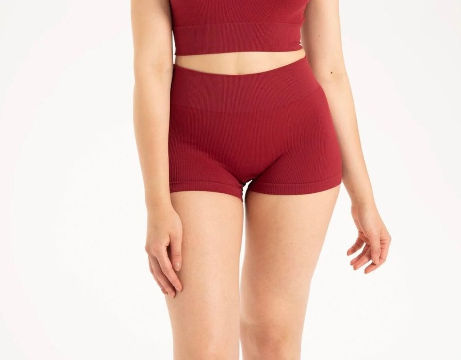 Koyu kırmızı renkte, kısa boyda, yumuşak sentetik kumaştan yapılmış kadın taytı. Spor ve sokak tarzına uygun, zahmetsiz şıklık sunar. ♀️