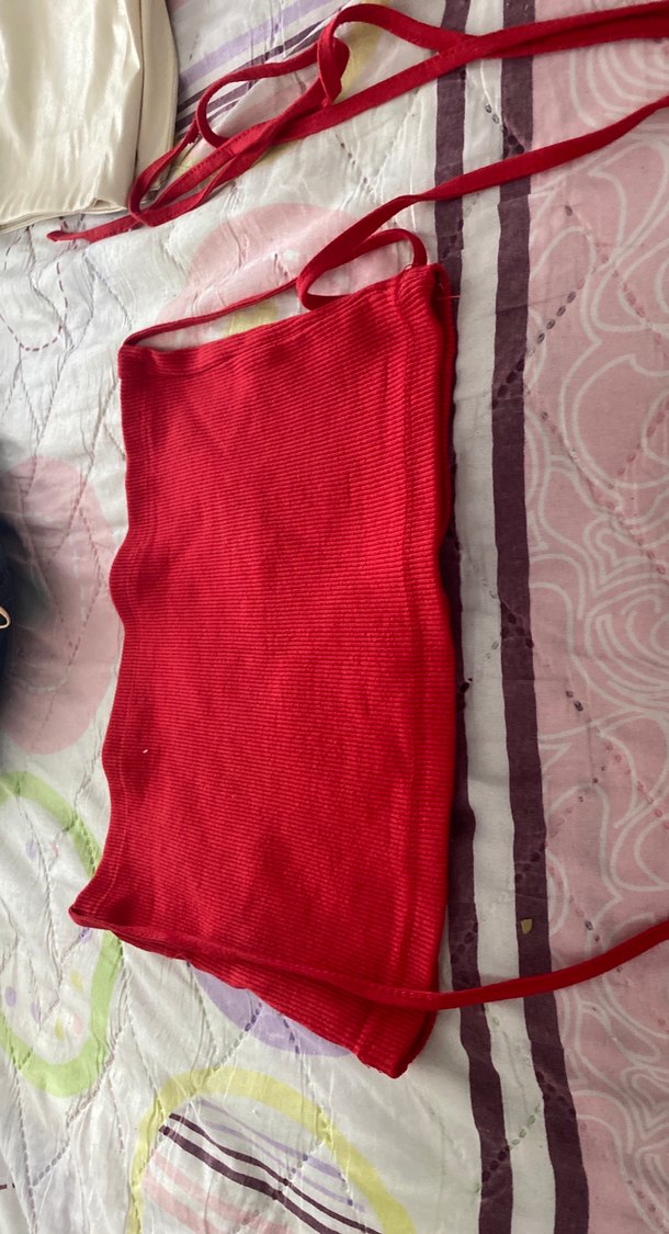 Canlı kırmızı renkte, yumuşak kumaştan yapılmış mini üst. Ayarlanabilir askılar ile rahat ve güvenli kullanım sağlar.