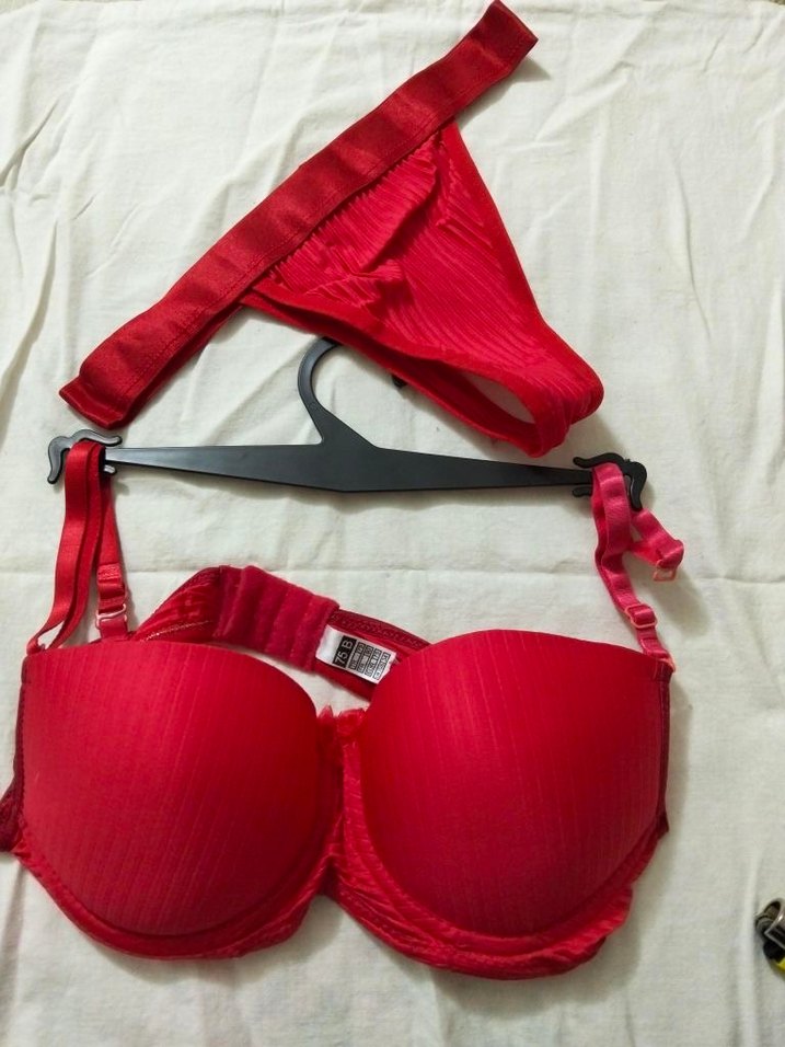 Canlı kırmızı renkte, desen içermeyen minimalist ve çağdaş tarzda, normal uzunlukta midi sütyen ve külot takımı. ❤️