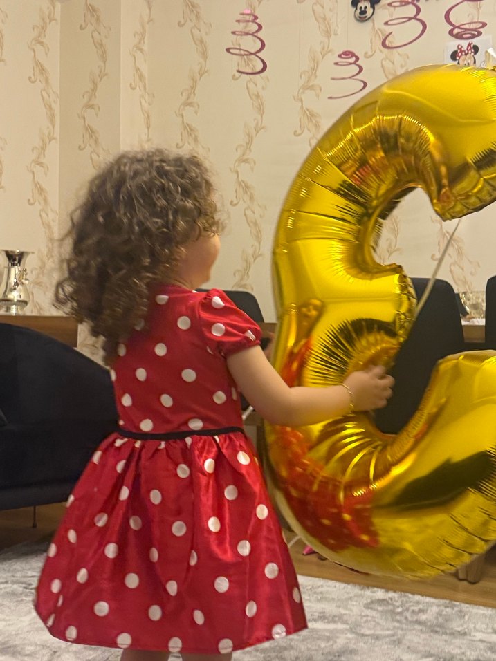 Kırmızı, parlak puantiyeli ve fiyonk detaylı, fitted kesim kız çocuk elbisesi. Askılı ve halter yaka tasarımla pop kültür tarzında şık bir model. Minnie mouse elbisesi