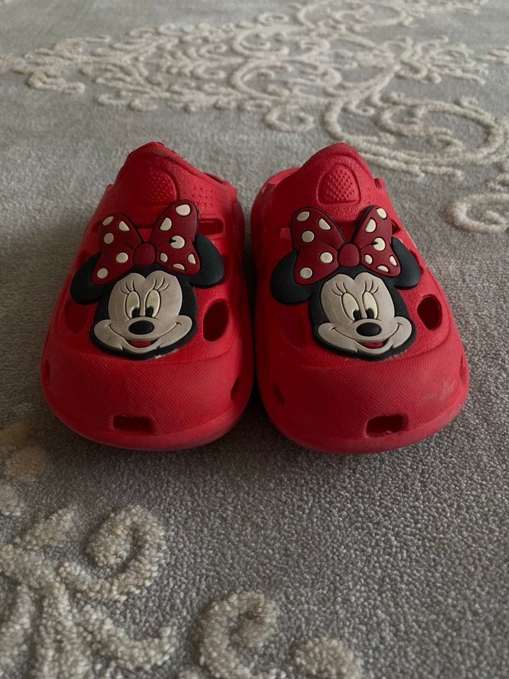 Kırmızı renkli, Minnie Mouse baskılı kız terliği. Kaydırmaz taban cross. Rahat ve şık.