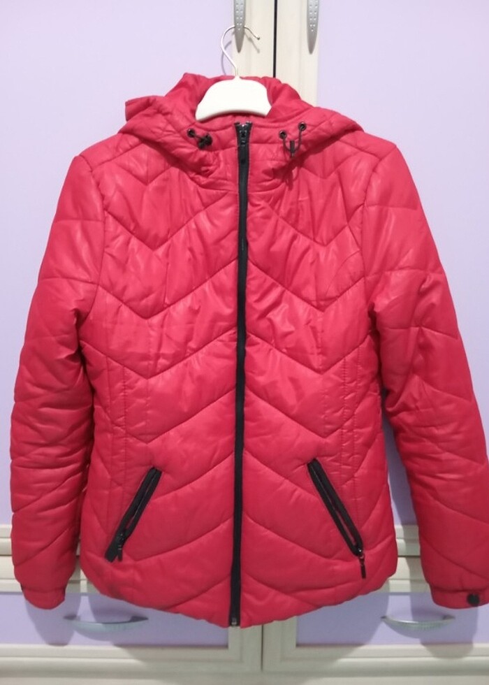M beden uyumlu kırmızı mont az kullanılmış defosuz