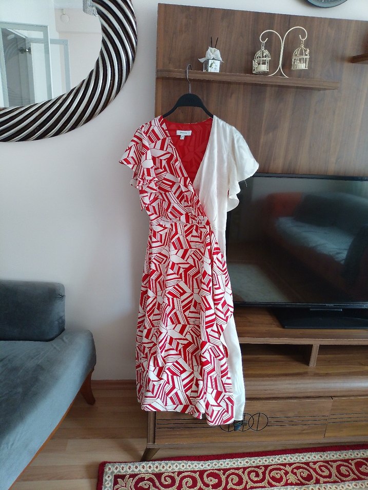 Her yerde bulunamayacak bir model temizleme yapıldı fakat kullanmadım astarlı kırmız ekru renklerde çok şık bir elbise