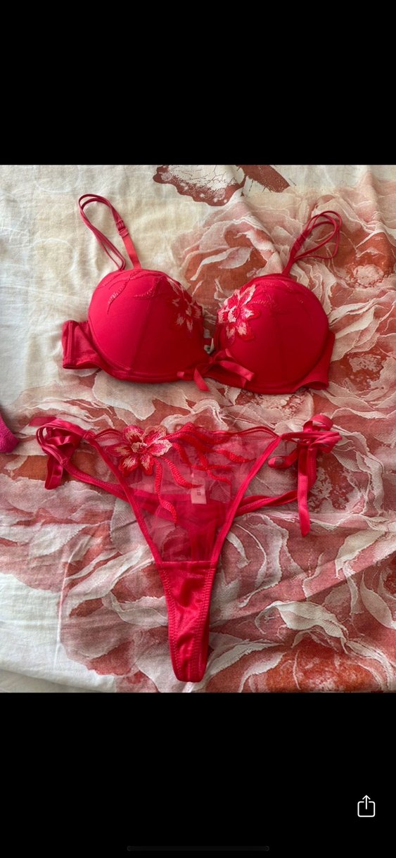 Koyu kırmızı tonlarında, nakış detaylı, bohem tarzda normal uzunlukta askılı sütyen ve midi kesim alt takım.