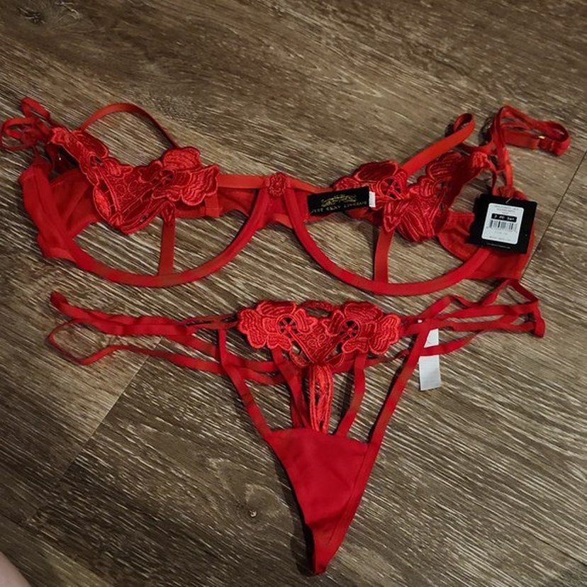 Koyu kırmızı bohem sütyen takımı, nakışlı çiçek desenleri ve mini boy tasarımıyla Paris alt kültürünü yansıtıyor.