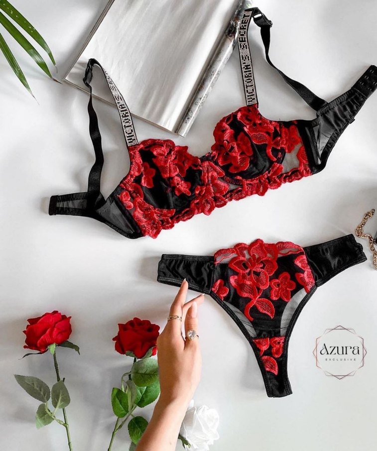 Kırmızı Nakışlı Büstiyer ve Külot Takımı l ve Xl beden