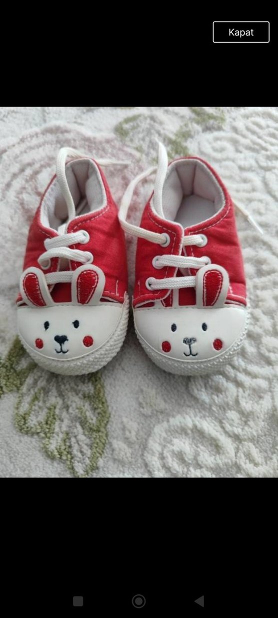 Nakışlı tavşan desenli, kırmızı kauçuk erkek bebek ilk adım ayakkabısı, kolay giyilen cırt cırtlı, sokak stili için uygun.