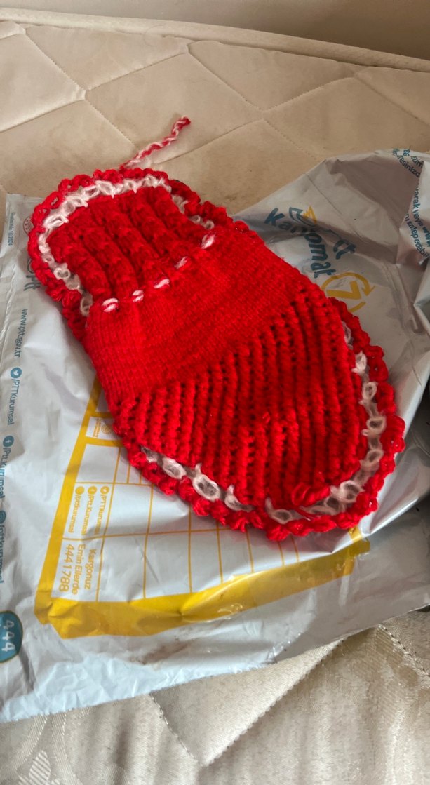 Kırmızı fırın eldiveni, renkli nakışlı desenlere ve örme dokuya sahiptir, sıcak eşya tutarken koruma sağlar.