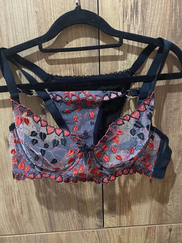 Kırmızı Nakışlı Gotik Mini Sütyen
