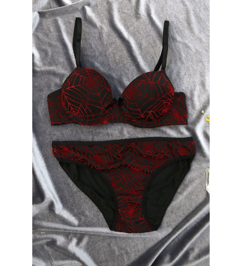 Kırmızı Nakışlı Gotik Sütyen ve Külot Takımı