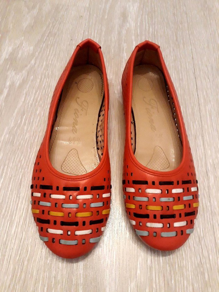 Kırmızı renkli, blok topuklu kadın babetler, renkli nakış desenleri ve tokalı detayıyla, günlük kullanıma uygun kauçuk malzemeden yapılmıştır.