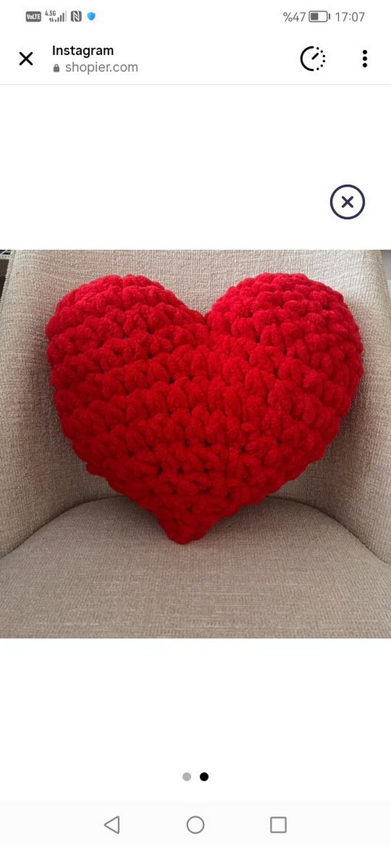 Kırmızı kalp şeklinde, renkli nakışlı ve yumuşak dokulu yastık, mekanlara sıcaklık katar. ❤️