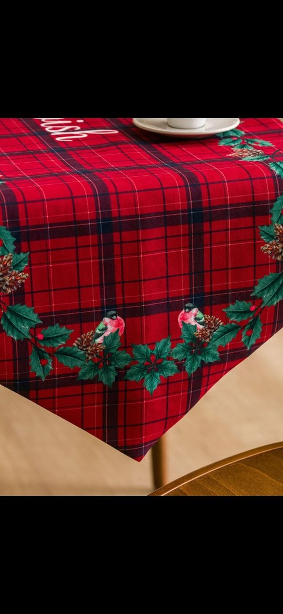Kırmızı Nakışlı Kareli Masa Örtüsü