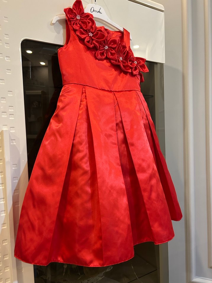 Kırmızı Nakışlı Kolsuz Kız Çocuk Elbise