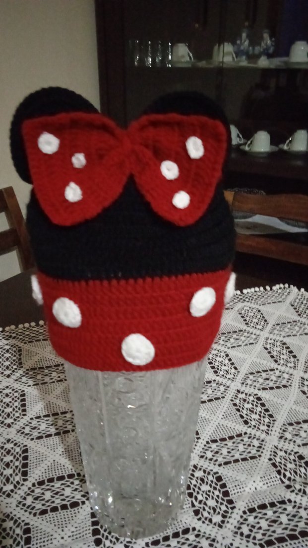 Kırmızı ve siyah renklerde, beyaz nakışlı noktalar ve fiyonk detaylı renkli örgü çocuk bere, oyunlu ve gotik tarzı bir araya getiriyor.