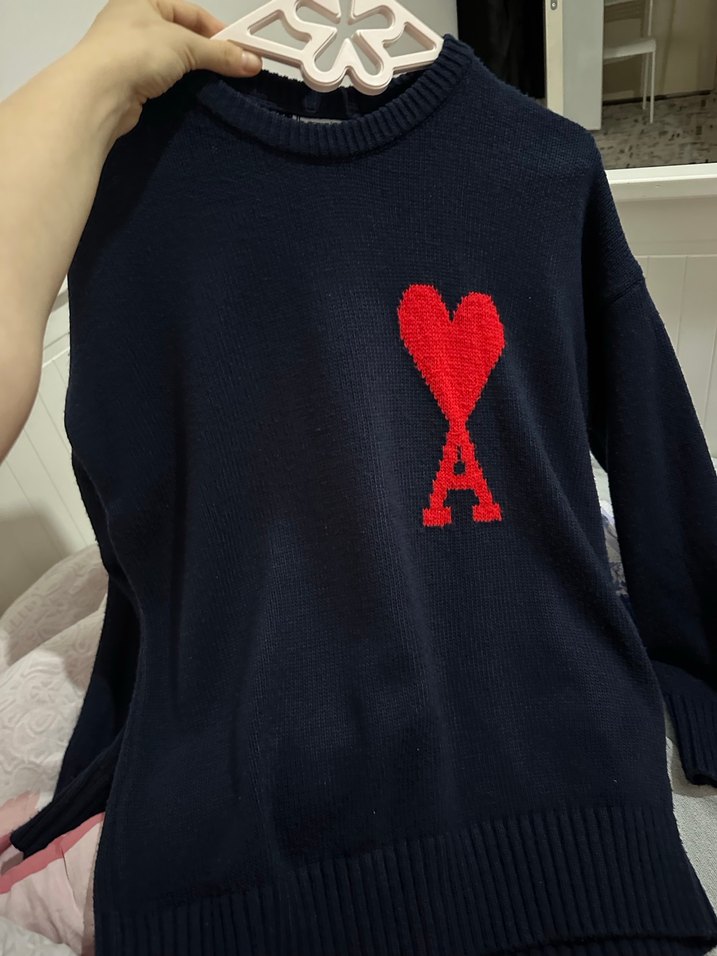 Siyah renkli, uzun kollu ve yuvarlak yakalı triko kazak. Önünde kırmızı nakışlı kalp ve A harfi bulunur, rahat ve salaş kesimiyle günlük kullanıma uygundur. ❤️