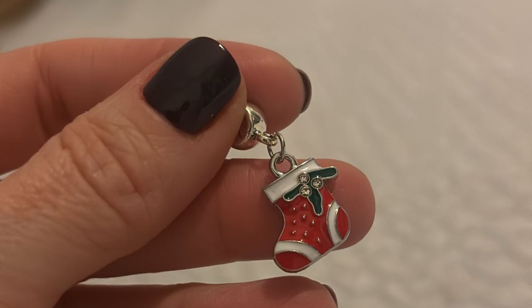 Nakışlı kırmızı çorap tasarımlı, tokalı kadın charm, rahat ve bohem tarz için uygun.