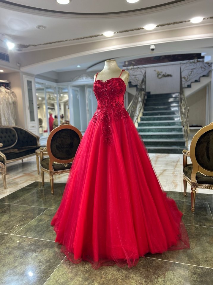 38-40 beden, ince askılı, Fransız güpürlü, taş işlemeli, kırmızı kınalık. Bir kere giyildi sorunsuz ve temiz. Herhangi bir problemi yok. Tarlatan da dahil. Askılı ve nakışlı kırmızı abiye, işlemeli ve boncuk detaylı oturan üst kısmı ile uzun, zarif bir etek sunar.