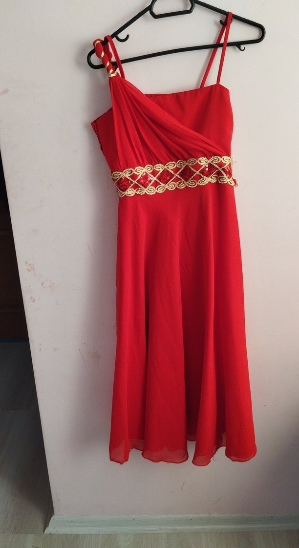 Kırmızı Nakışlı Uzun çocuk Abiye Elbise