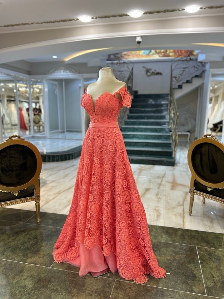 36-38 beden Yavruağzı/ somon rengi dantelli gece kıyafeti/ kınalık. 1 kere giyildi, sorunsuz. Canlı renkte, nakışlı dantel kumaştan yapılmış, straplez yakalı ve askılı kollu uzun nişan elbisesi. Modern klasik ve vintage tarzı yansıtan, düzenli kesimle tasarlanmıştır.