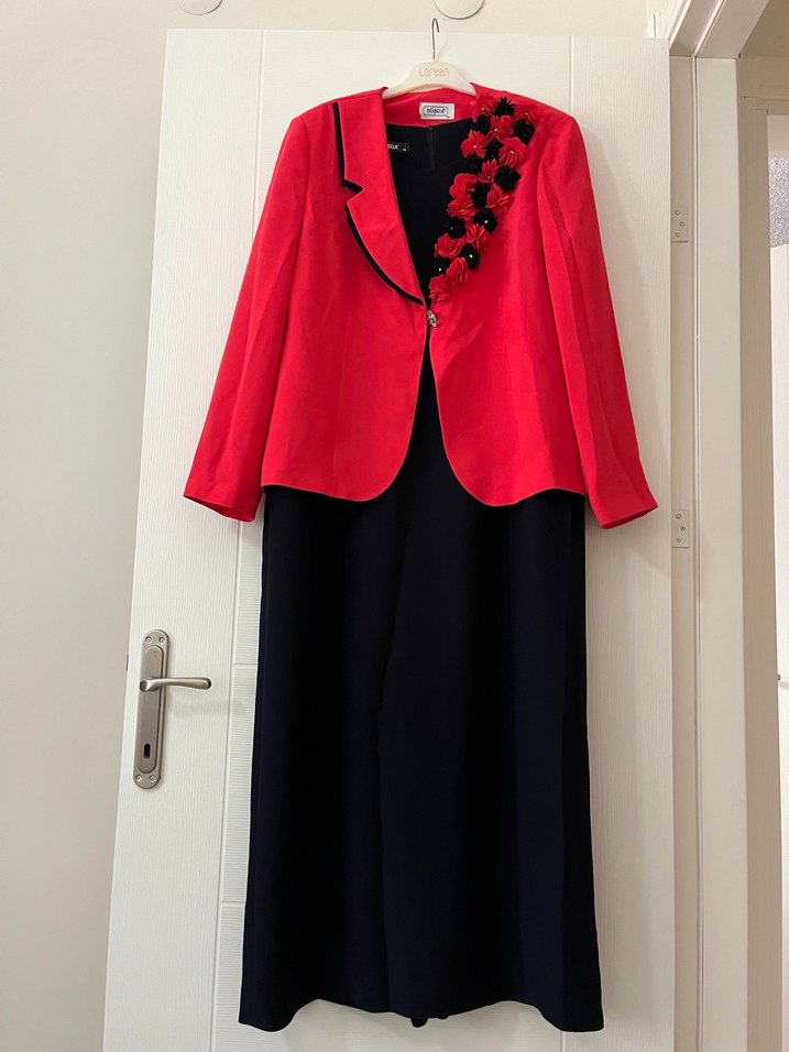 Kadınlar için uzun boy, regular fit, kesik yaka detaylı kırmızı ceket. Nakışlı çiçek süslemeleri ve düğmeli kapama bulunur. Uzun kollu, yumuşak kumaştan, klasik gotik Paris tarzı, ofis kullanımı için uygun.