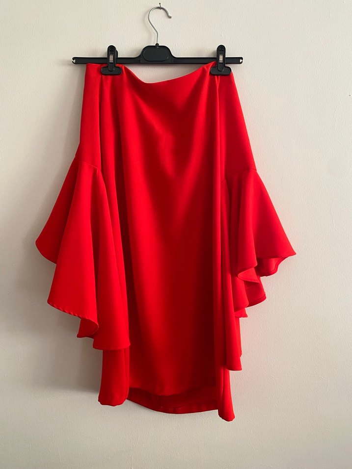 Kırmızı drapeli, kısa ve bol kesim mini elbise yumuşak sentetik kumaştan üretilmiştir. Romantik akşamlar için uygundur. ❤️