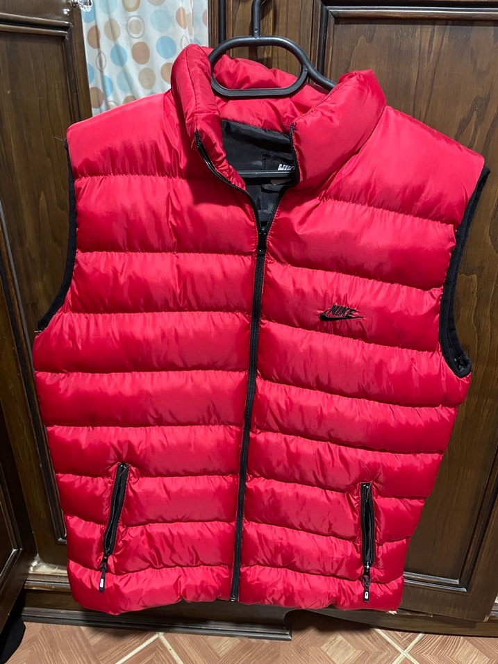 Kırmızı renkli, fermuarlı cepleri ve yüksek yakası olan Nike marka şişme yelek. Sentetik kumaştan, günlük kullanıma uygun, dar kesim ve sokak stilinde.