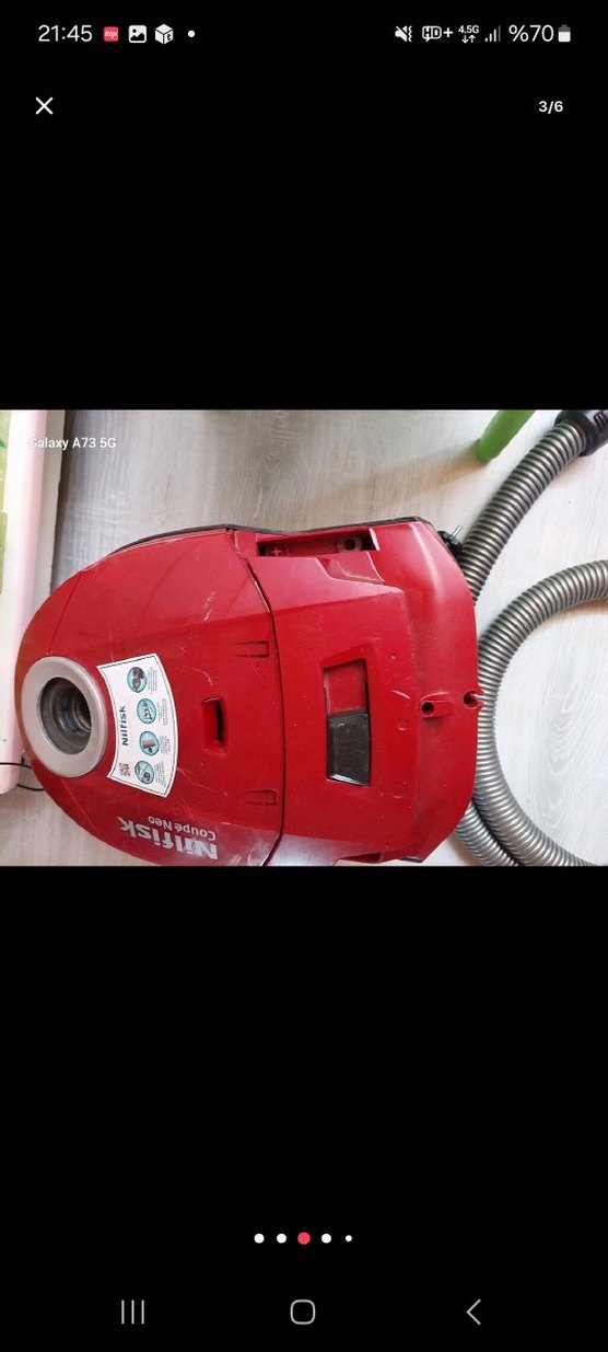 Kompakt tasarımlı kırmızı Nilfisk elektrikli süpürge, esnek hortumu ve toz seviyesi izleme penceresi ile etkili temizlik sağlar. Ürün kullanıldı çizikler mevcut parça niyetine satılıktır. Kullanilabilir durumda ama Filtre değişirse hijyenik olur.