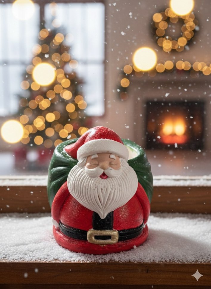 Renkli kırmızı Noel Baba biblosu, yeşil çanta detaylı, tatil dekorasyonları için uygun.
