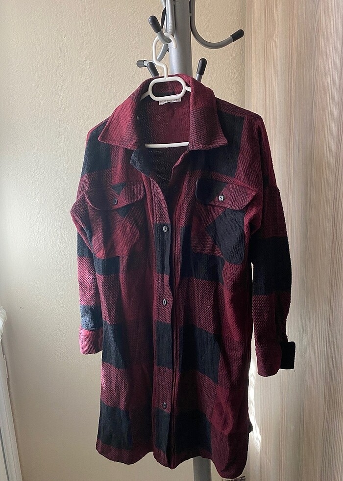 Tesettür tunik kırmızı kareli oduncu gömleği