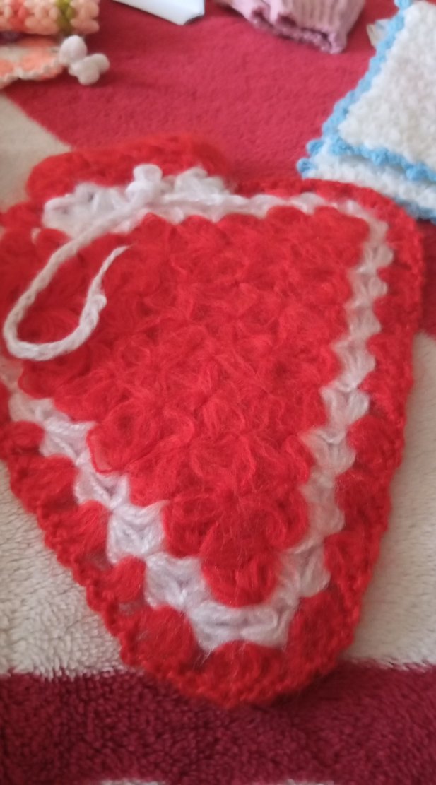 Beyaz bordürlü kırmızı örgü banyo süngeri, asma halkası ile yumuşak ve renkli, nazik peeling için.