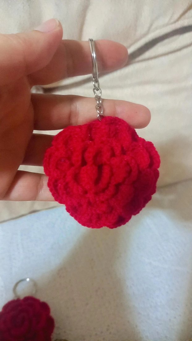 Kırmızı örgü tasarıma sahip, renkli ve bohem tarzda, anahtarlarınıza retro bir dokunuş katan rahat anahtarlık.