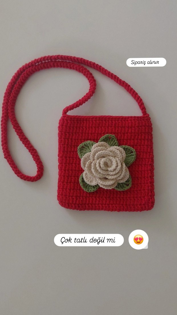 Kırmızı Örgü Çiçekli kız çocuk Çantası
