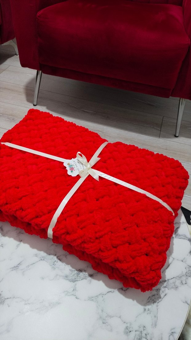 adet fiyatıdır Kırmızı örgü bebek battaniyesi, yumuşak ve rahat olup çocukları sıcak tutar. Canlı renkte