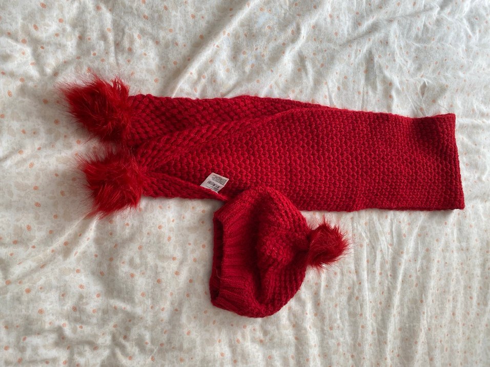 Kırmızı Örgü Çocuk Bere ve Atkı Seti