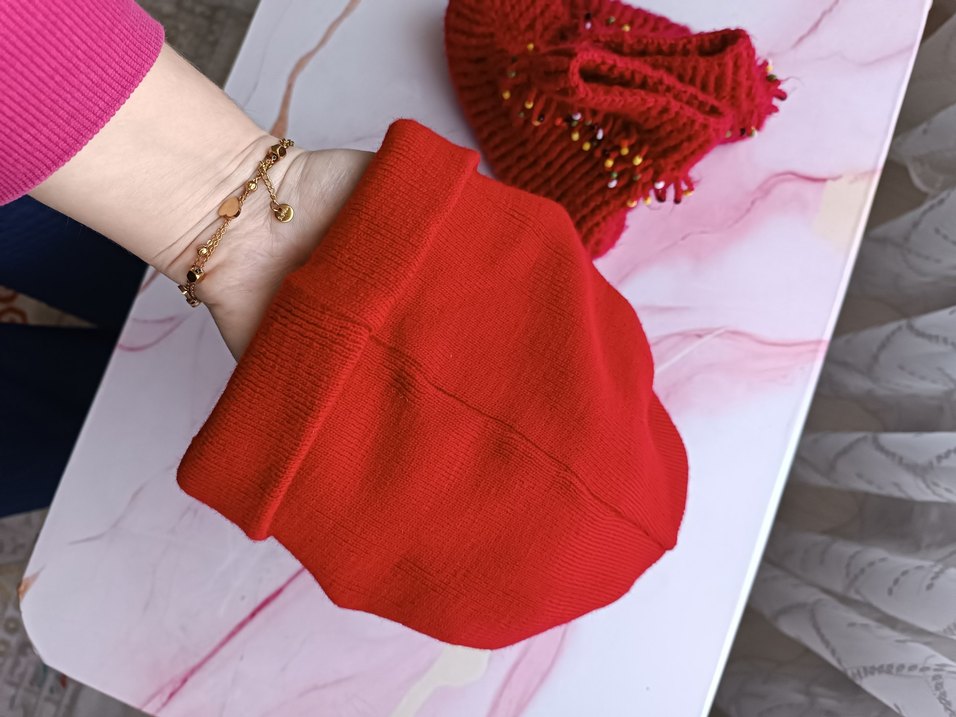 Kırmızı örgü çocuk bere, rahat ve renkli sokak stili sunar, modayı takip edenler için şık bir seçimdir.