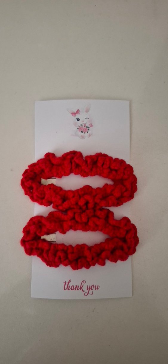 Kırmızı Örgü Çocuk Saç Tokası Seti