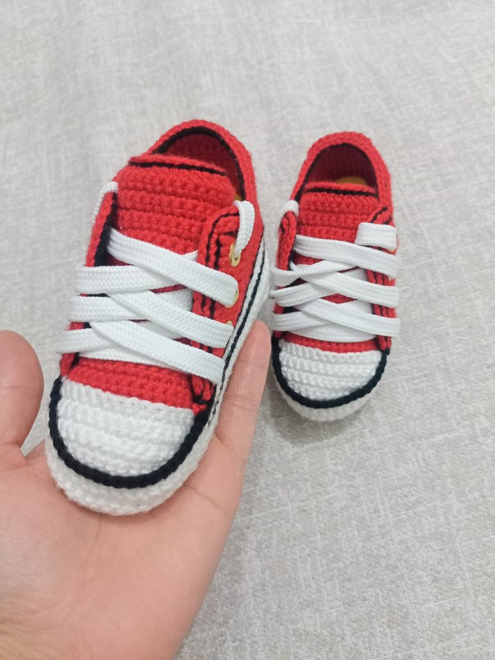 Canlı kırmızı renkte, beyaz bağcıklı örgü erkek çocuk spor ayakkabısı. Yumuşak örgü kumaştan, renkli ve sokak stilinde rahat tasarım.